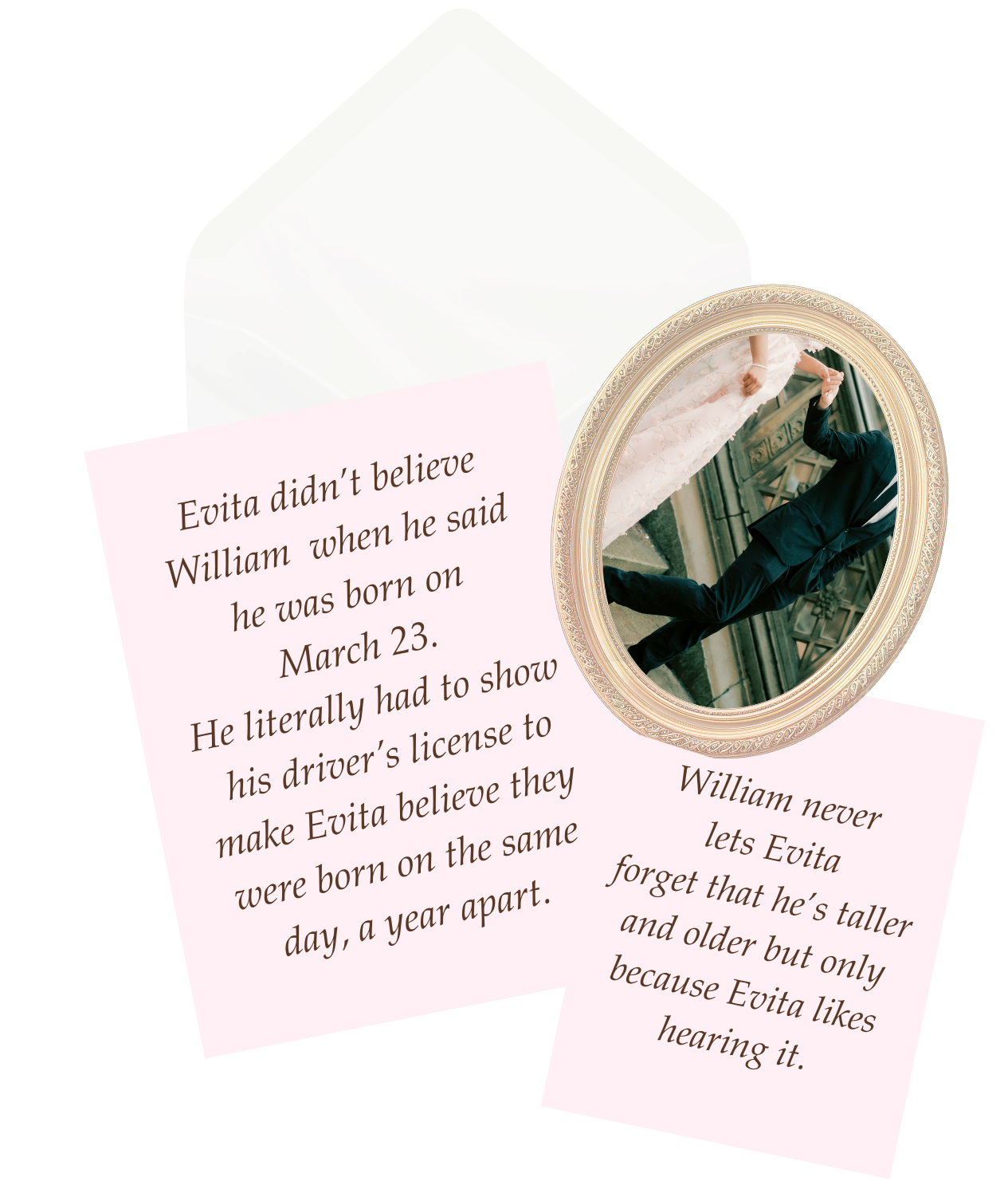 On February 15, William proposed to Evita with three letters: one for the past, one for the present and one for the future. In the first, he reminisced the journey that brought them to this moment. In the second, he cherished their love for each other that grew over the years and in the third, he promised the life yet to unfold — a lifetime of choosing her, again and again.